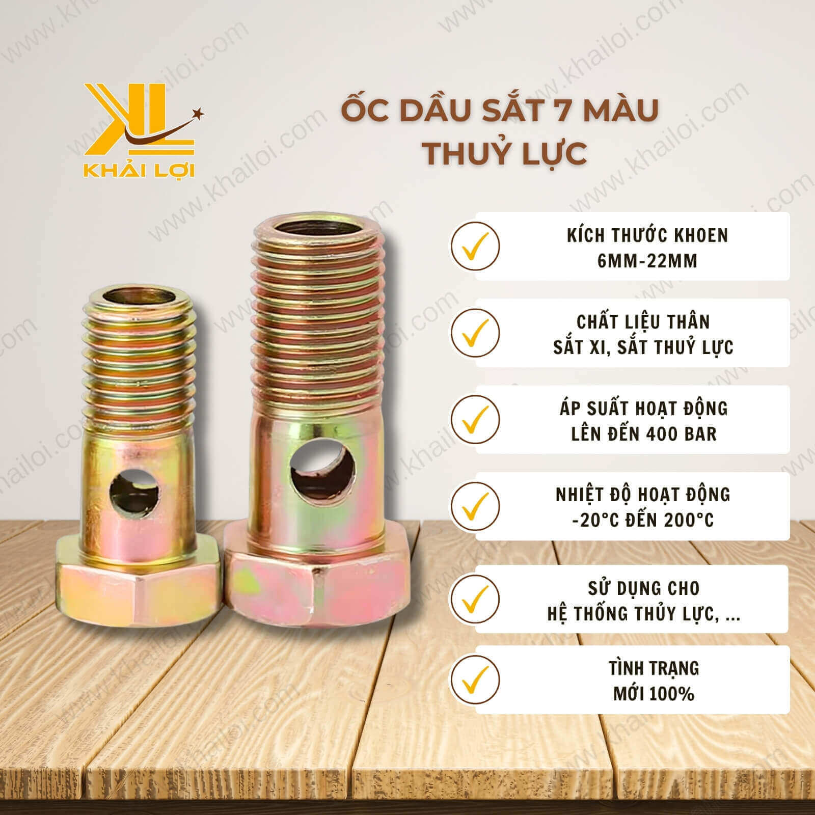 Tóm lại : Ốc Dầu Sắt 7 Màu Thủy Lực là phụ kiện quan trọng trong các hệ thống thủy lực, có khả năng chịu áp suất cao và làm việc ổn định trong dải nhiệt độ rộng. Với vật liệu sắt thủy lực, bề mặt mạ 7 màu và nhiều kích thước lựa chọn, sản phẩm đáp ứng tốt yêu cầu kỹ thuật trong lắp đặt và vận hành hệ thống thủy lực công nghiệp.